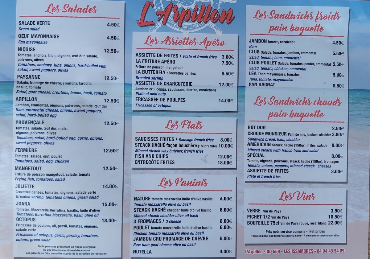 L'Arpillon offers a delightful blend of restaurant, bar, and café experiences right by the sea in Roquebrune-sur-Argens. Known for its fresh, vibrant dishes, the menu highlights include super fresh salads, expertly prepared tuna steak, and comforting classics like fish and chips and hearty American sandwiches. Guests praise the fair prices and the lively atmosphere, perfect for cocktail hour or a relaxed lunch overlooking breathtaking water views.